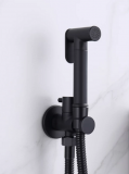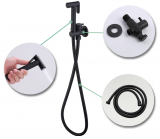 Bidet handdoucheset bestaat uit een handdouche, een doucheslang 120 cm en een stopkraan (alleen koud water). De elementen uit deze bidet handdoucheset zijn gemaakt van messing en in zwarte kleur uitgevoert.