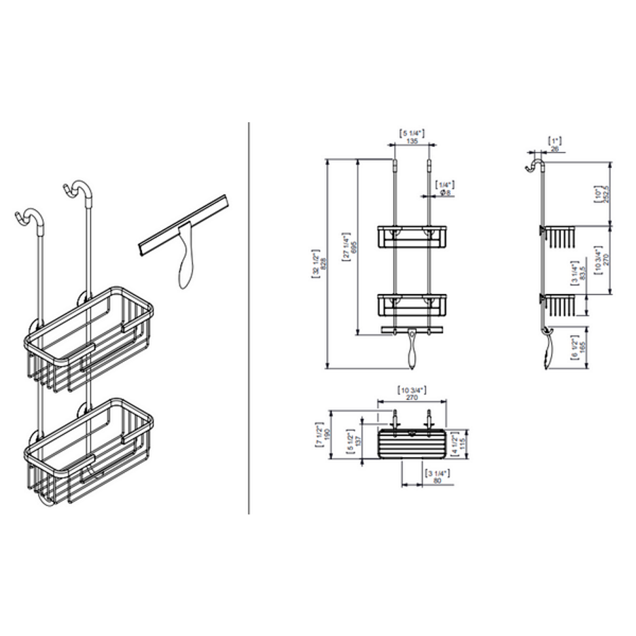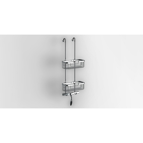 Doucherek Jabon 2 laags chroom, breedte 27cm, diepte 19cm, hoogte 69,5cm. Door de uitsparingen in de onderzijde blijft er geen water in staan. Inclusief douchewisser.
