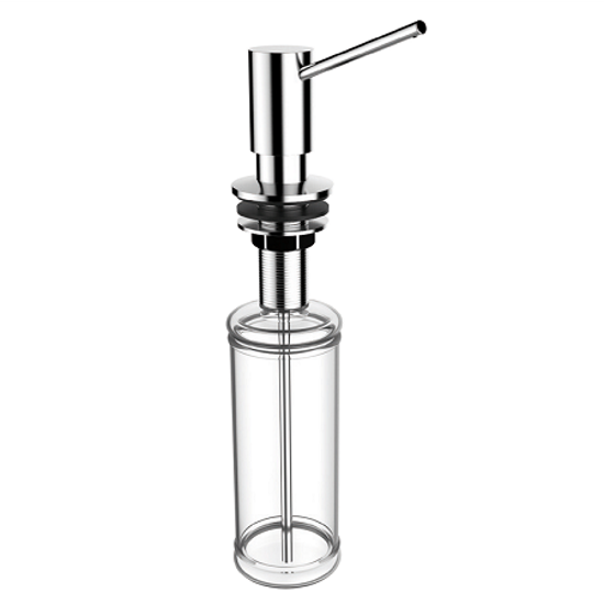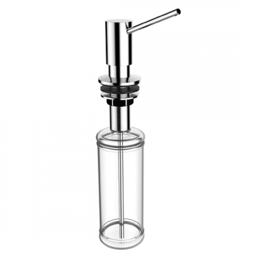 Zeep dispenser chroom, lengte uitloop 8,5 cm. Inclusief reservoir met inhoud van 400 ml, eenvoudig van bovenaf bij te vullen. Geschikt voor een bladdikte tot 40mm.