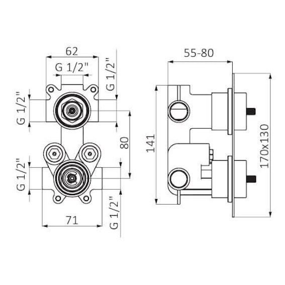 Thermostatische inbouwkraan Kala met omstelregeling chroom