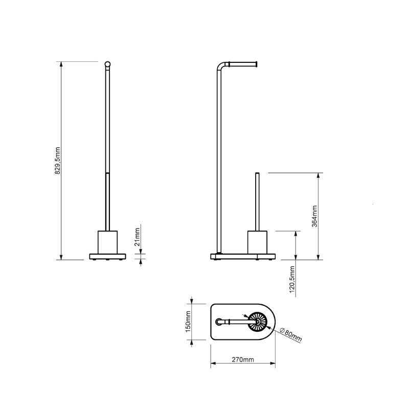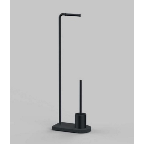 Staande toiletrolhouder Nomad mat zwart met toiletborstel set is een stijlvol accessoire in uw badkamer of toilet.