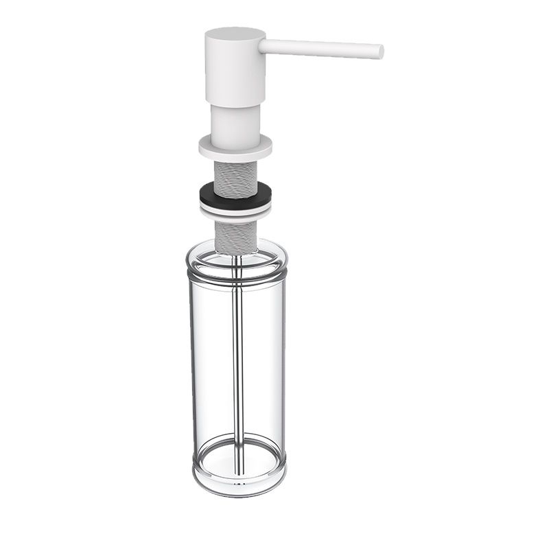 Zeep dispenser wit van messing (metaal), lengte uitloop 8,5 cm. Inclusief reservoir met inhoud van 400 ml, eenvoudig van bovenaf bij te vullen. Gatmaat ø 25-30mm, geschikt voor een bladdikte tot 50mm.
