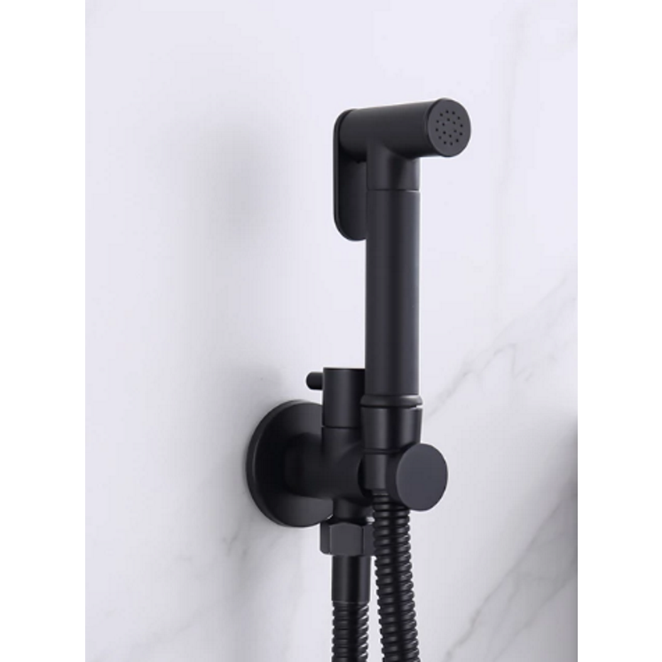 Bidet handdoucheset bestaat uit een handdouche, een doucheslang 120 cm en een stopkraan (alleen koud water). De elementen uit deze bidet handdoucheset zijn gemaakt van messing en in zwarte kleur uitgevoert.