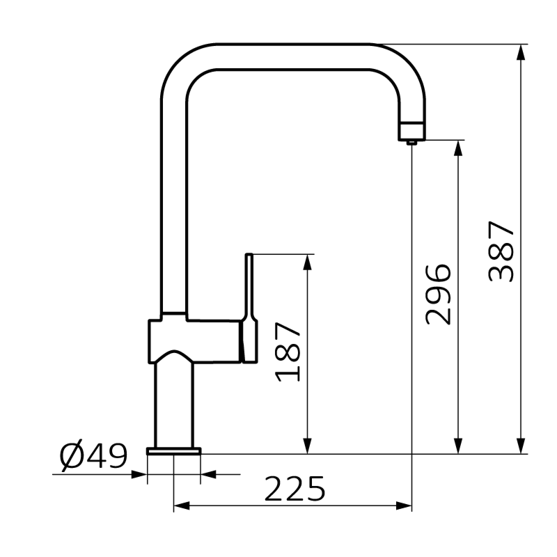 Design keukenkraan met draaibare uitloop en keramisch binnenwerk. Wordt geleverd met flexibele aansluitslangen voorzien van 3/8" wartels en aansluitset