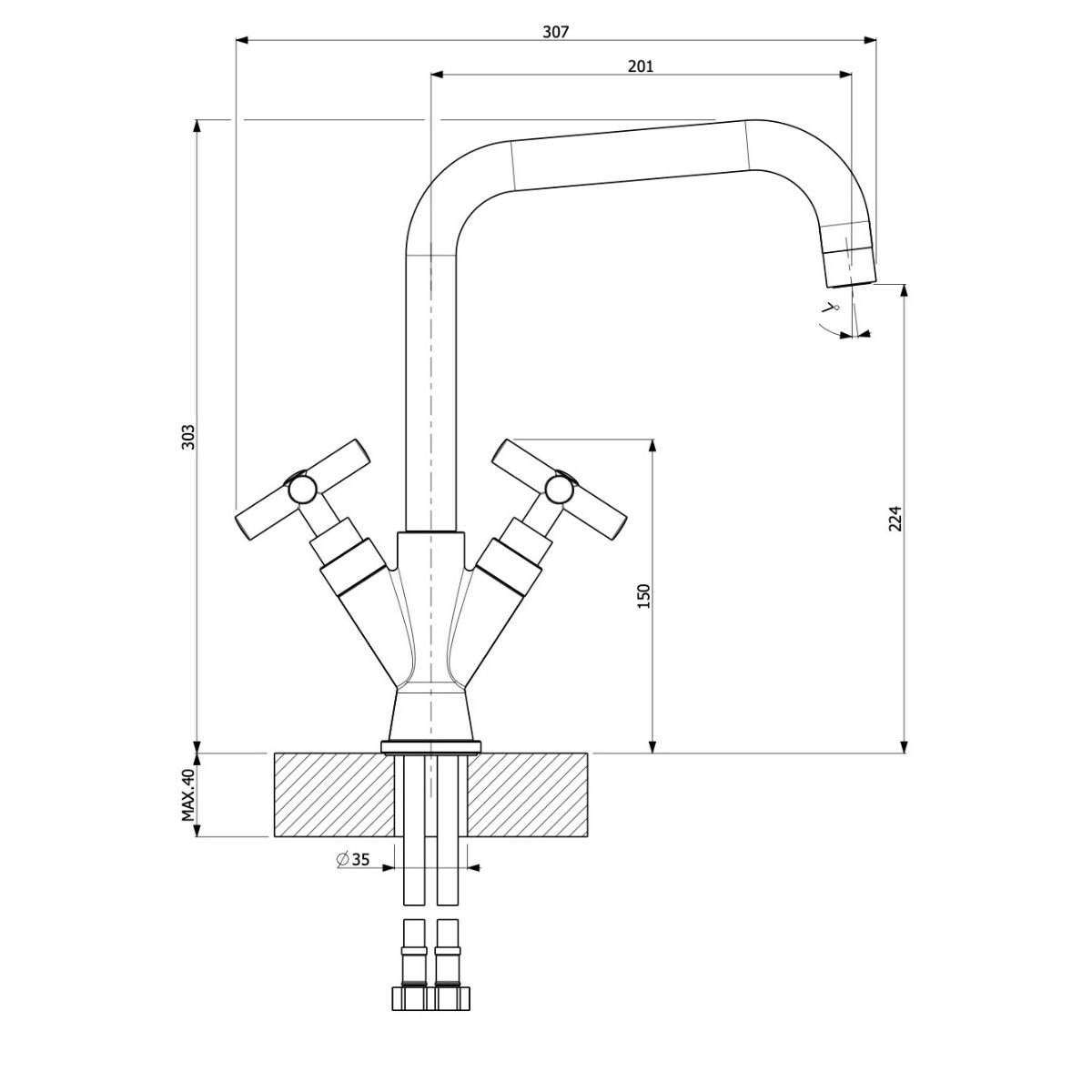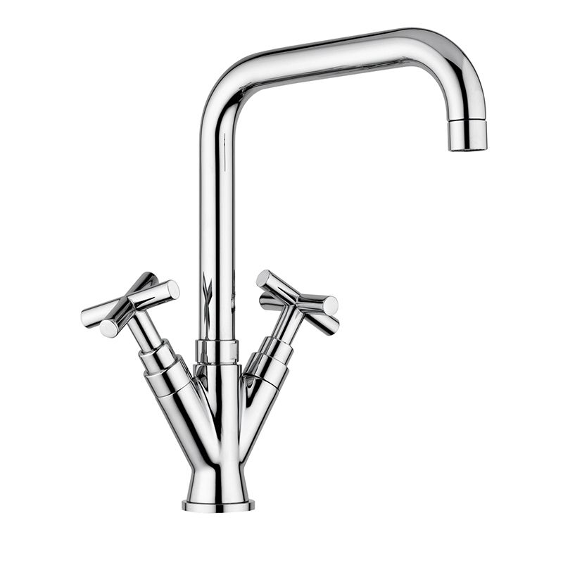 Tweeknops keukenkraan Rialto 3100, levering inclusief flexibele aansluitslangen 1/2"x3/8" met wartel en twee stuks hoekstopkranen met filter.
