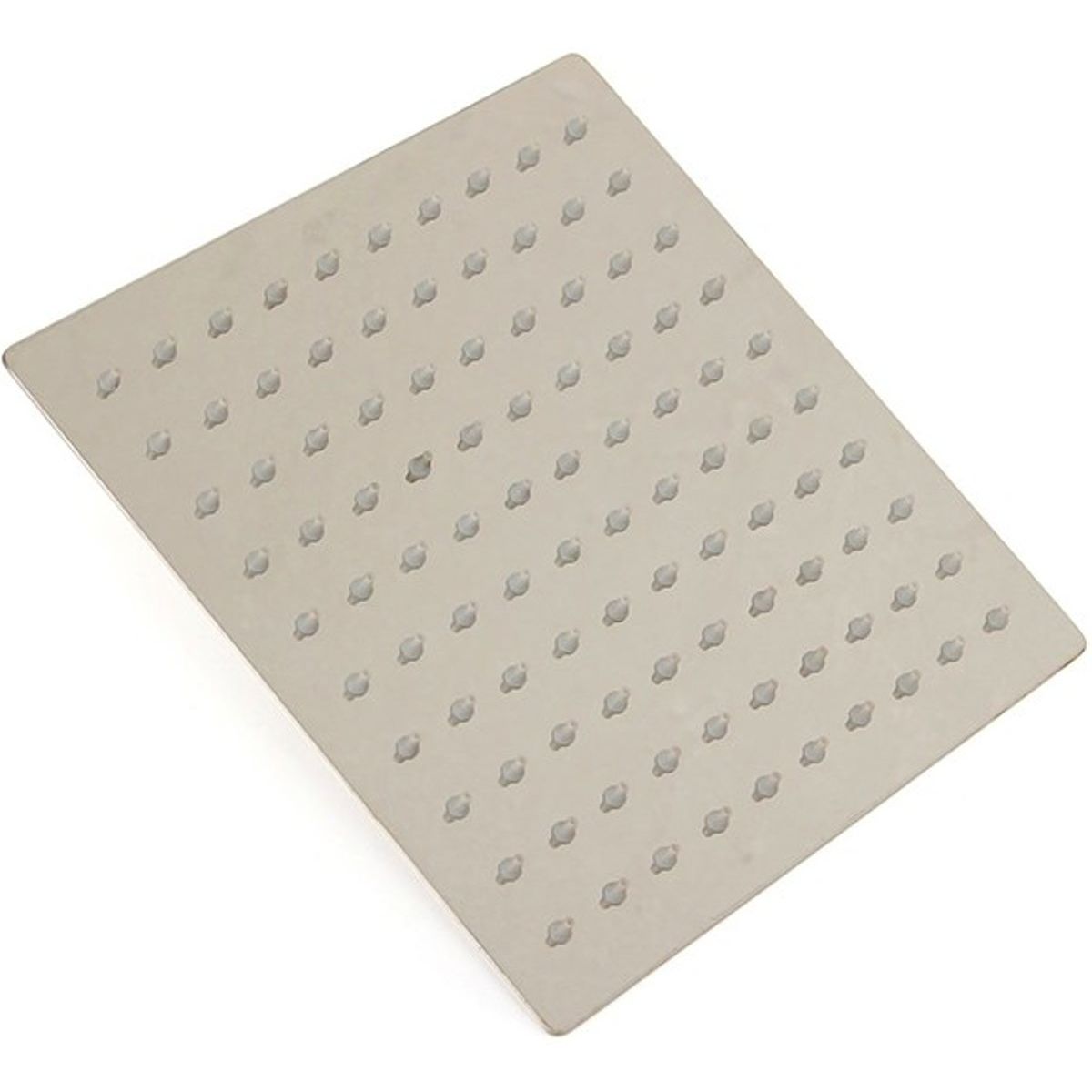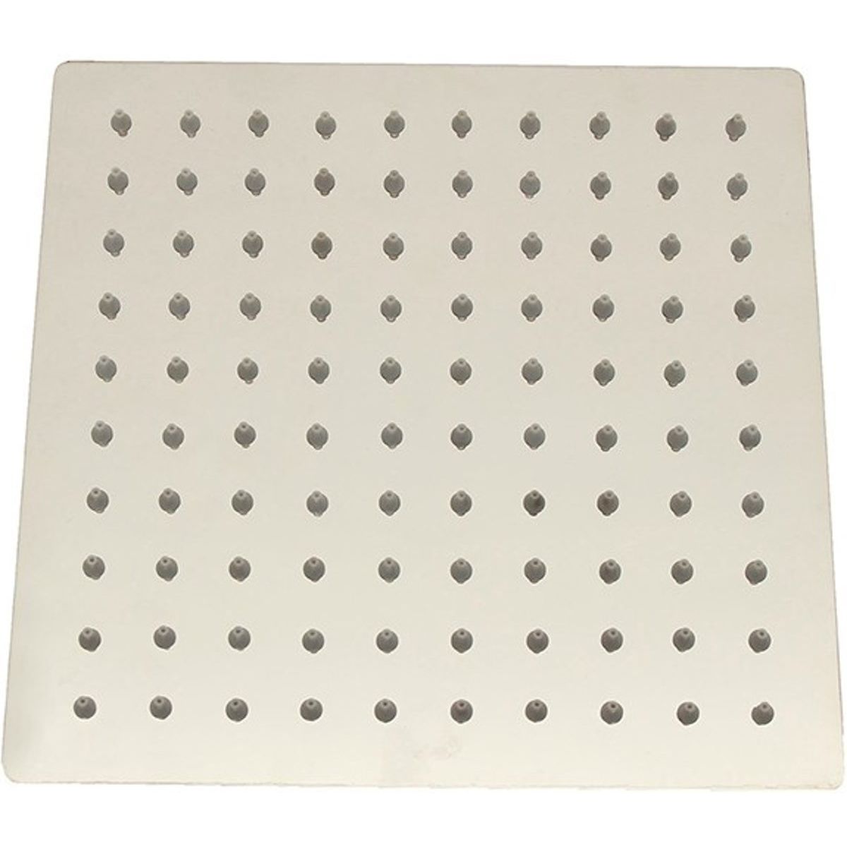 Vierkante regendouche Slim 25x25cm met een dikte van slechts 4mm gemaakt van gepolijst RVS. Deze hoofddouche wordt geleverd met een kogelgewricht met een 1/2" aansluiting zodat de douche enigszins gericht kan worden na montage. Verder is de douchekop voorzien van een anti-kalk functie, door de flexibele siliconen noppen kunnen kalk en vuil deeltjes eenvoudig worden weg gewreven.