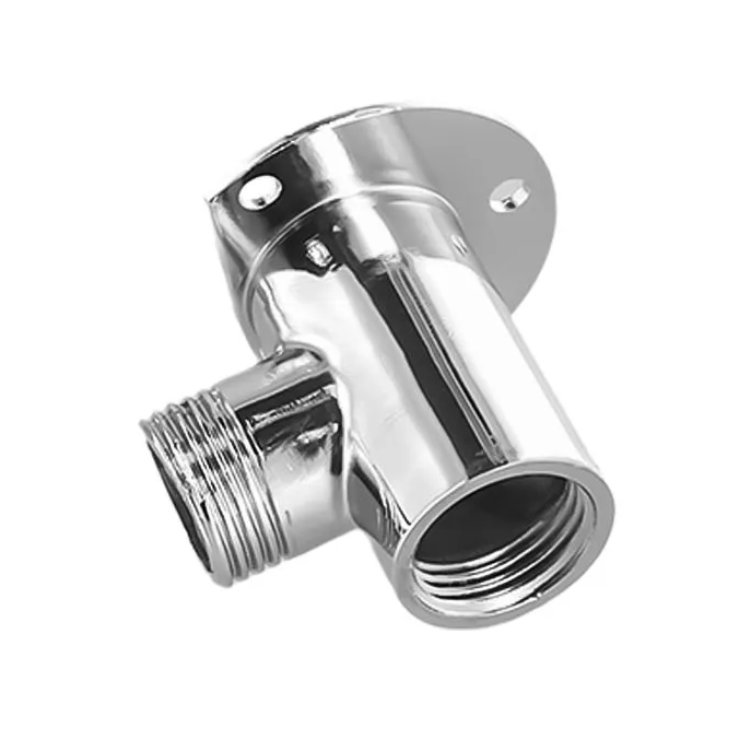 Messing opbouw muursteun voor regendouche, kleur chroom. Deze muursteun is te monteren in combinatie met een opbouw douchekraan waarbij geen water aansluiting in de muur nodig is.