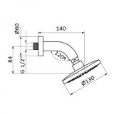Ronde regendouche met een diameter van 13cm gemaakt van ABS. Deze hoofddouche wordt geleverd met een kogelgewricht met een 1/2" aansluiting zodat de douche enigszins gericht kan worden na montage. Verder is de douchekop voorzien van een anti-kalk. De onderzijde van de douchekop is van wit ABS waardoor eventuele kalkaanslag niet zichtbaar is.