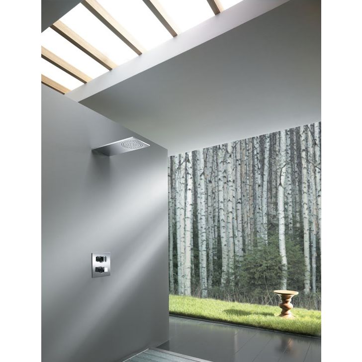 Design inbouw hoofddouche Cubic 45x20cm van geanodiseerd aluminium. Voorzien van een anti-kalk functie, door de flexibele siliconen noppen kunnen kalk en vuil deeltjes eenvoudig worden weg gewreven. Aansluiting 1/2" schroefdraad geschikt voor een muurplaat.