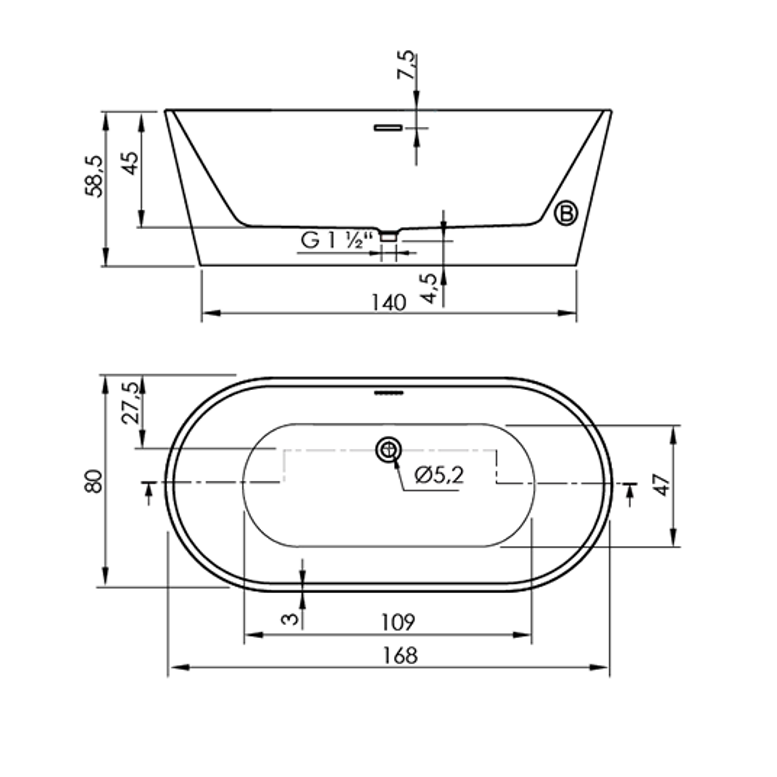 Vrijstaand design bad 170x80cm, hoogte 58,5 cm, van Acryl, kleur wit. Dit bad wordt geleverd inclusief een flexibele afvoerbuis en een afvoerplug chroom welke is voorzien van een push open-dicht mechanisme. Het ligbad heeft een maximale inhoudt van 268 liter.