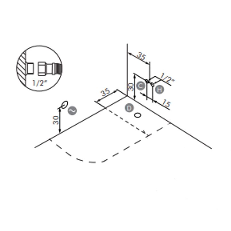 Acryl Hoekbad Torino Angolo 170x70cm glanzend wit rechts