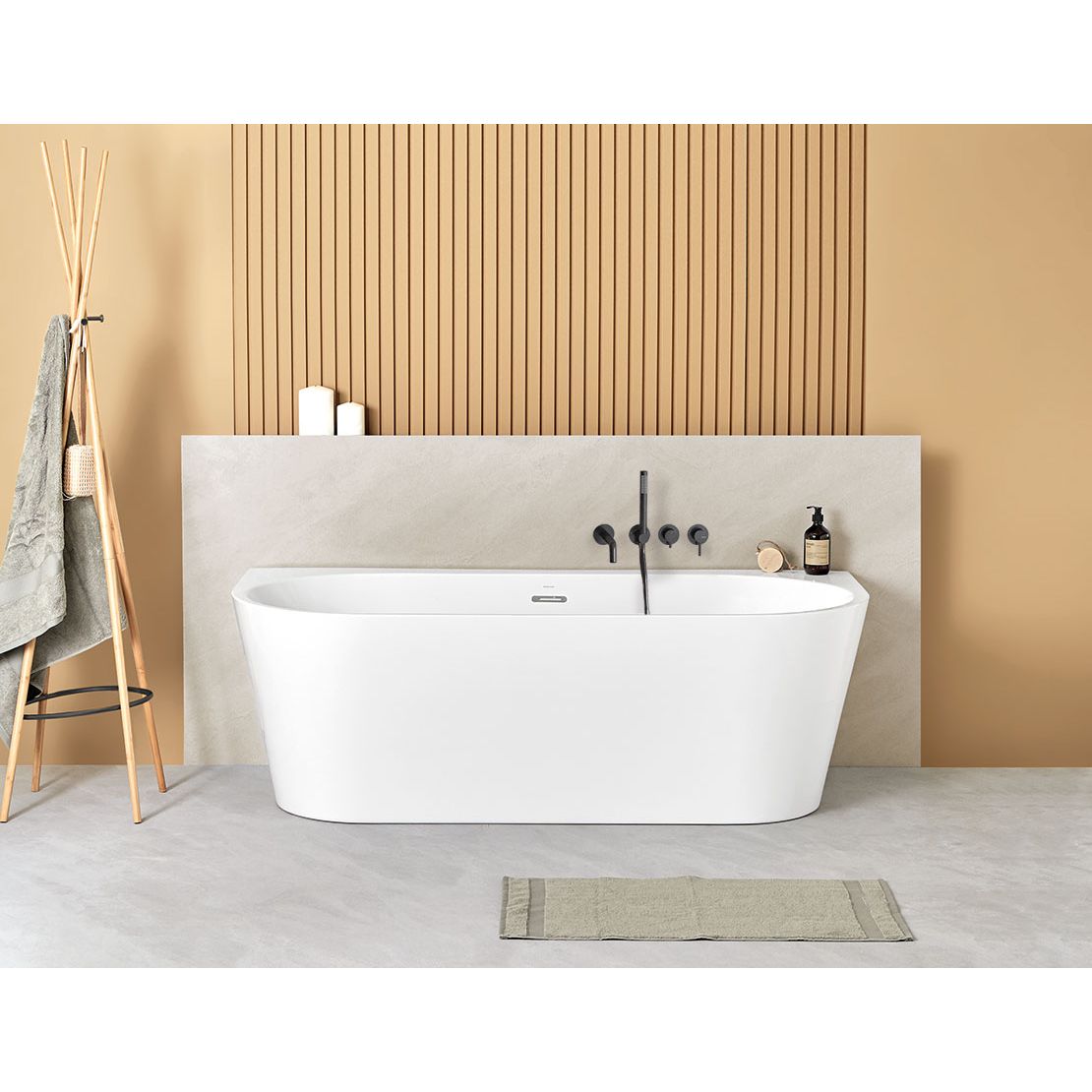 Half vrijstaand acryl ligbad Torino Muro 170x80cm glanzend wit