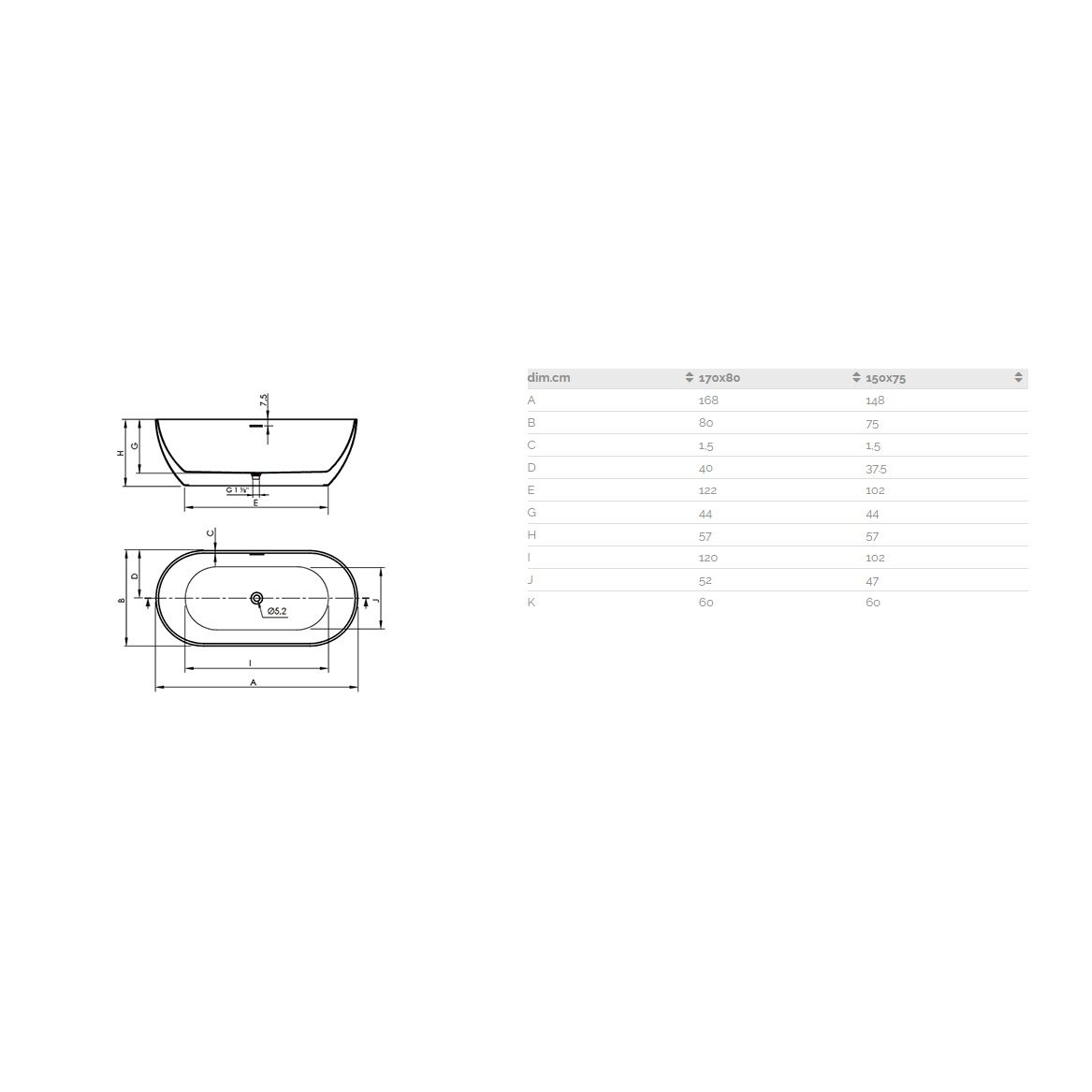 Vrijstaand design bad 150x75cm, hoogte 57cm, van Acryl, kleur mat wit. Dit bad wordt geleverd inclusief een flexibele afvoerbuis en een afvoerplug welke is voorzien van een push open-dicht mechanisme. Het ligbad heeft een maximale inhoudt van 248 liter.