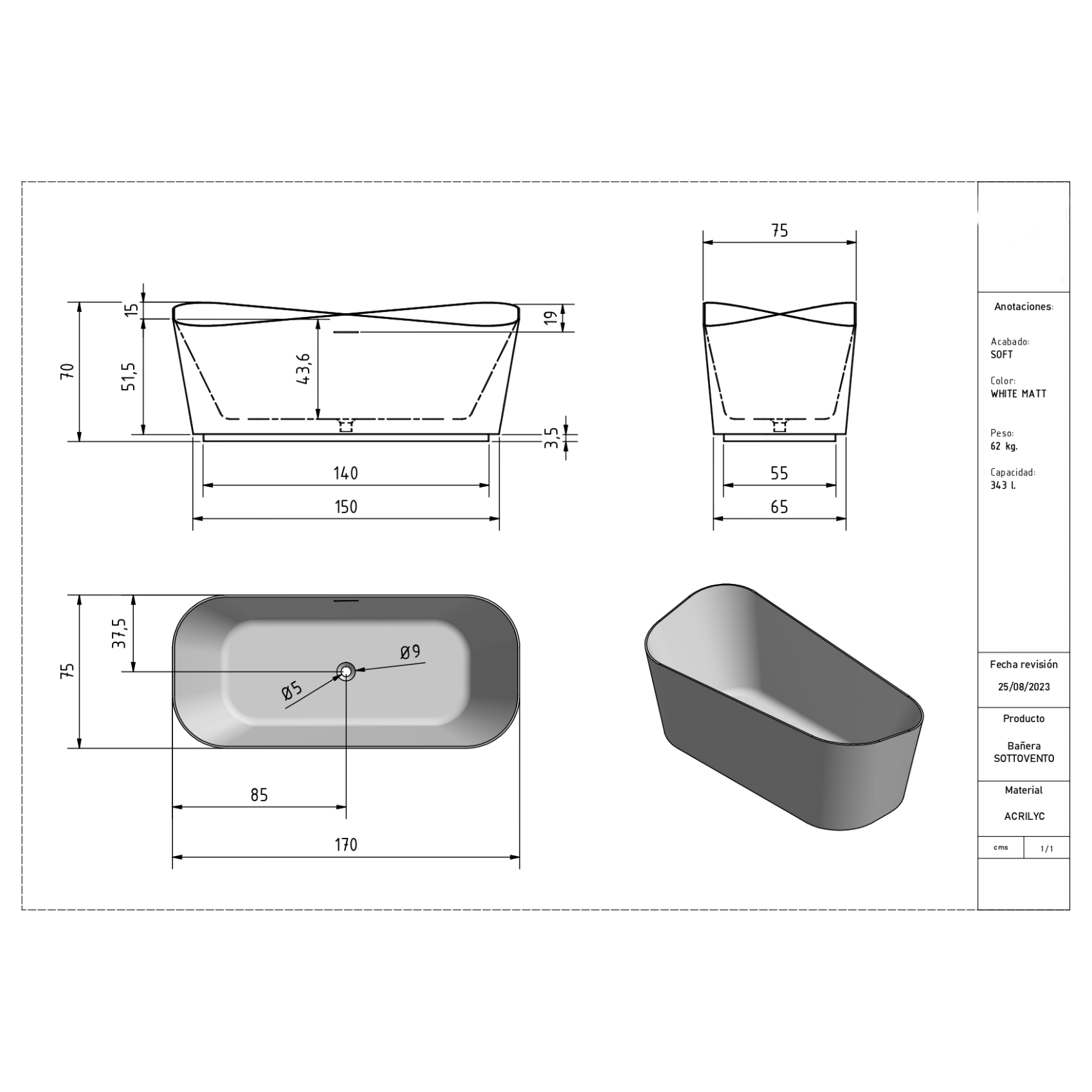 Vrijstaand acryl ligbad Sottovento 170x75cm mat wit Vrijstaand acryl ligbad Sottovento 170x75cm mat wit Vrijstaand acryl ligbad Sottovento 170x75cm mat wit