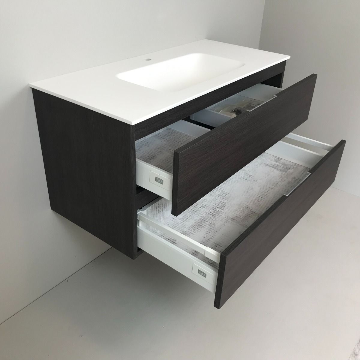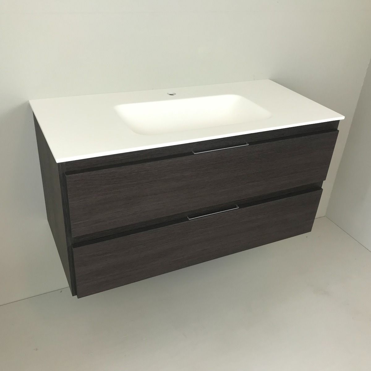 Badmeubel Wengé 100cm, wengé 'look' met Solid Surface wastafel