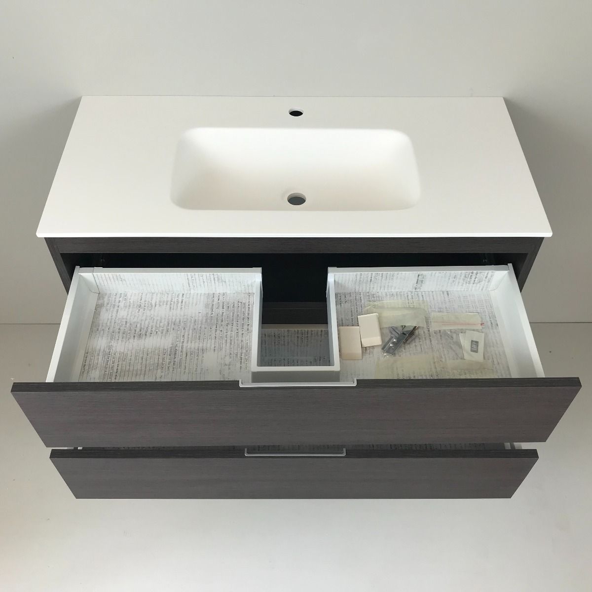 | Verpakkingsinhoud | Onderkast met 2 lades en Solid Surface wastafel |