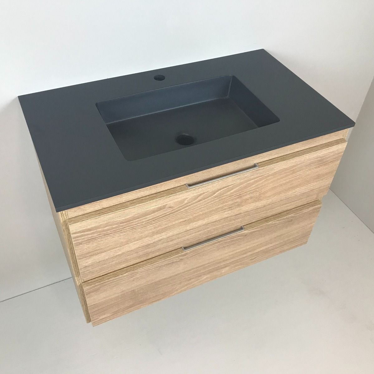 Badmeubel Roble 83cm, eiken 'look' met composiet wastafel antraciet
