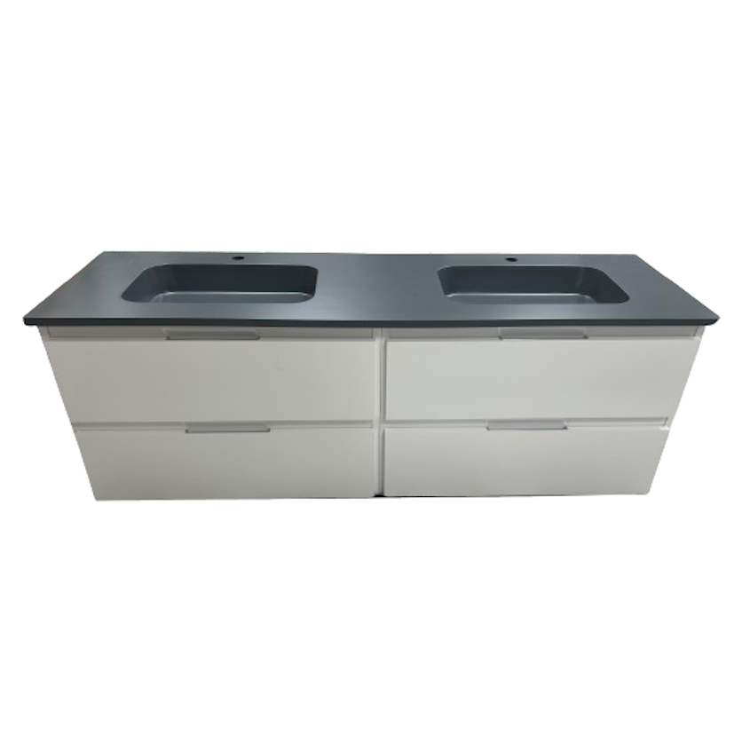 Dubbel badmeubel Life 150cm mat wit met composiet wastafel Cementgrijs RAL7033