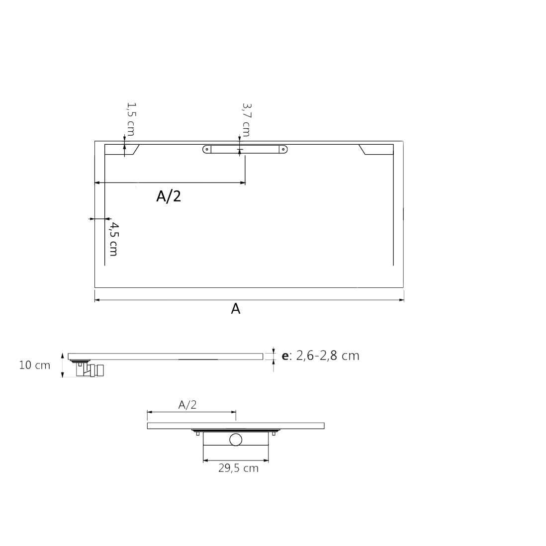 Platte composiet douchebak op maat Style is slechts 2,8cm hoog. Leverbaar in 9 kleuren en optioneel in RAL-kleur naar keuze, afwerking egaal. Inclusief geïntegreerde afvoergoot en sifon, standaard voorzien van afschot.