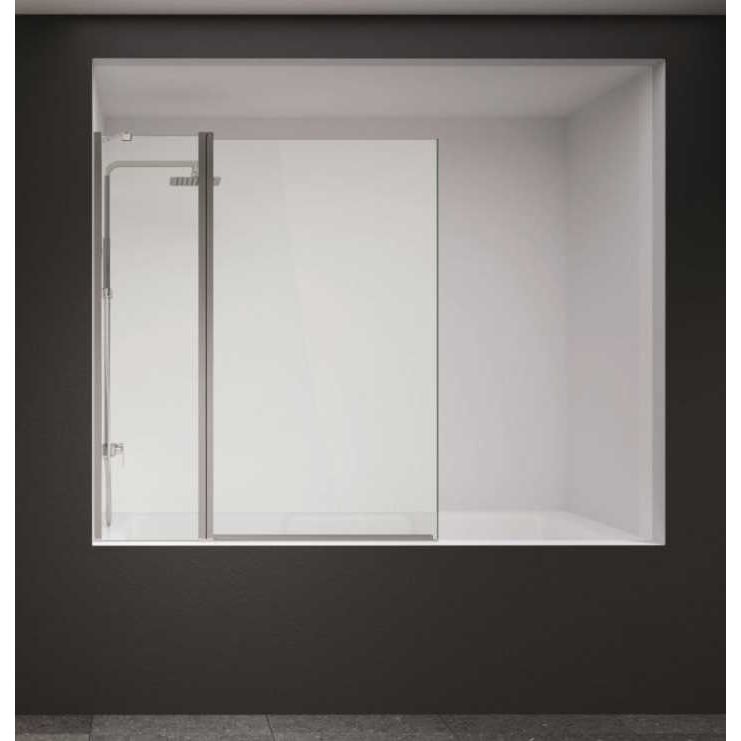 Badwand met draaibaar deel Padel van 6 mm veiligheidsglas met 180° design scharnieren, vuil- en waterafstotende anti-kalk oppervlaktebehandeling. Breedte vast deel 40cm, Breedte draaibaar deel 80cm,Hoogte 140cm, omkeerbaar dus zowel links als rechts te plaatsen.