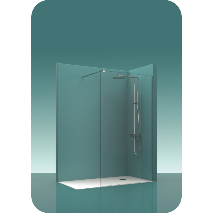 Douchewand Walk In in 90cm en hoogte 195cm. Van 8mm veiligheidsglas met verchroomd muurprofiel en op maat in te korten stabilisatorstang. Geschikt voor montage in een nis of hoek. De stelmogelijkheid van 20mm zorgt ervoor dat u deze douchewand ook perfect kunt plaatsen wanneer de vloer en wanden niet helemaal haaks zijn.