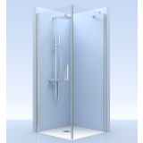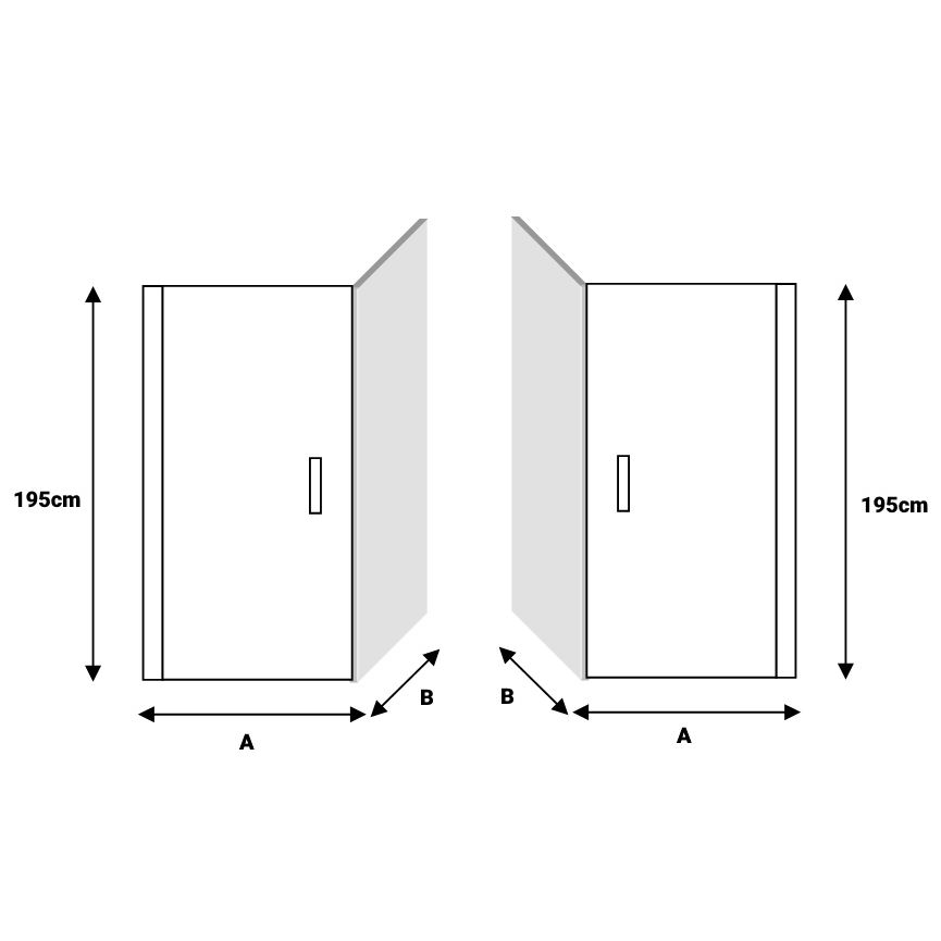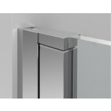 Draaibare douchedeur met zijwand Padel van 6 mm veiligheidsglas met 180° design scharnieren, magneetsluiting en vuil- en waterafstotende anti-kalk oppervlaktebehandeling. Standaard hoogte 195cm, maximale hoogte 220cm, omkeerbaar dus zowel links als rechts te plaatsen.
