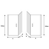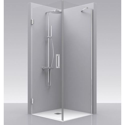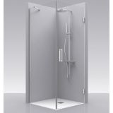 Draaibare douchedeur met zijwand Tedy  van 8 mm veiligheidsglas met 180° design scharnieren, magneetsluiting en vuil- en waterafstotende anti-kalk oppervlaktebehandeling. Standaard hoogte 195cm, maximale hoogte 240cm, omkeerbaar dus zowel links als rechts te plaatsen.