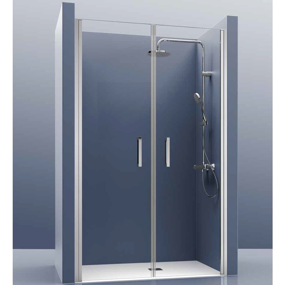 Penderdeur Padel van 6 mm veiligheidsglas met 180° design scharnieren, magneetsluiting en vuil- en waterafstotende anti-kalk oppervlaktebehandeling. Standaard hoogte 195cm, maximale hoogte 220cm.
