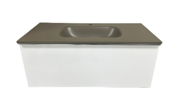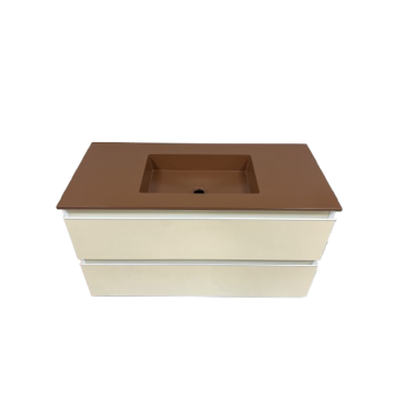 Badmeubel Top 100cm Wit Creme met Composiet wastafel Signaalbruin RAL8002Normale prijs € 790,00 Speciale prijs € 395,00