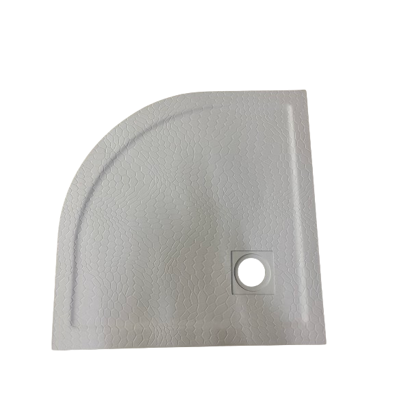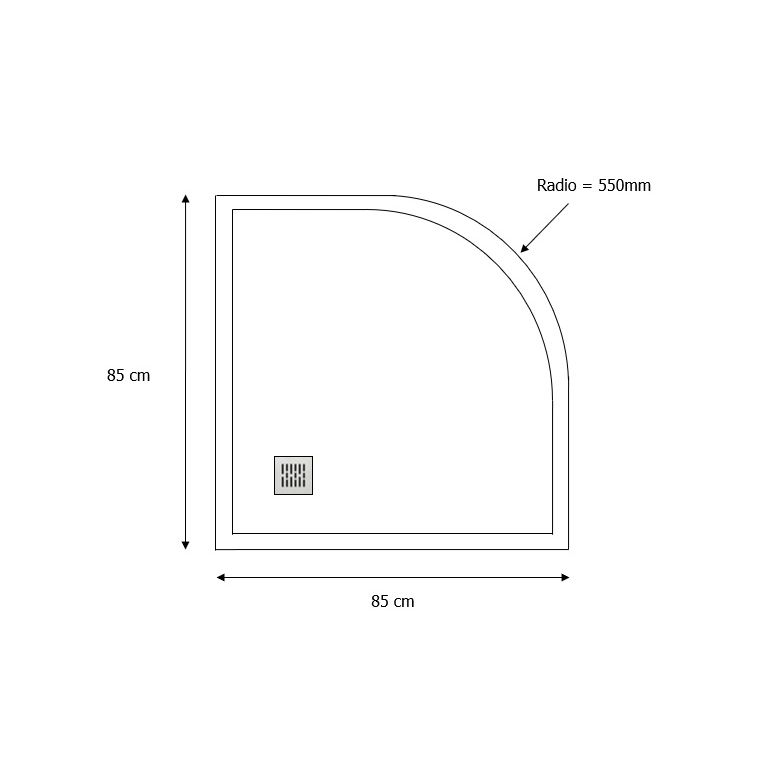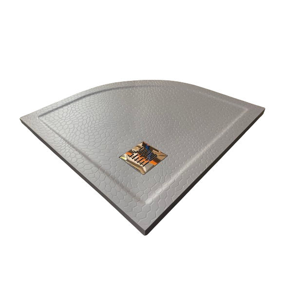 Massieve composiet douchebak kwartrond met rand Stone, afmeting 85x85x3.5cm in Betongrijs RAL7004 met honingraat anti-slipstructuur. Inclusief RVS afvoerrooster en sifon (inbouwhoogte 60 mm) met uitneembaar zeefje. Oorspronkelijke prijs €437,- nu afgeprijsd vanwege een lichte afwijking in de afvoer, die enigszins scheef zit. Afstand afvoer boven is 5,4cm en onder 5,2cm. Eenmaal gemonteerd is deze afwijking nauwelijks merkbaar of zichtbaar. Douchebak is voorzien van afschot en is eenvoudig op maat te zagen.