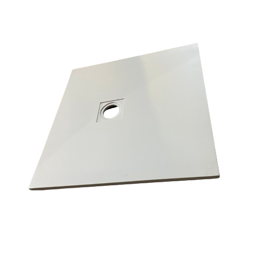Massieve composiet douchebak Solid, afmeting 80.5x80.5x2.7cm in Lichtgrijs RAL7035 met egale anti-slipstructuur. Inclusief RVS afvoerrooster en sifon (inbouwhoogte 60 mm) met uitneembaar zeefje. Oorspronkelijke prijs €494,- nu afgeprijsd vanwege een lichte afwijking in de afvoer, die enigszins scheef zit. Afstand afvoer boven is 33.3cm en onder 33.5cm. Eenmaal gemonteerd is deze afwijking nauwelijks merkbaar of zichtbaar. Douchebak is voorzien van afschot en is eenvoudig op maat te zagen.