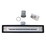 Platte douchebak op maat Hydra Frontal Eco van Solid Surface heeft een centraal geplaatste afvoer is slechts 3cm hoog. Leverbaar in wit, afwerking glad (egaal). Inclusief centrale geïntegreerde afvoer en sifon, standaard voorzien van afschot.