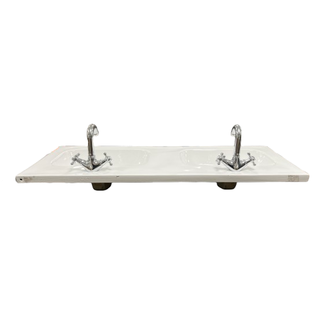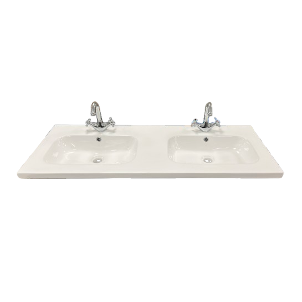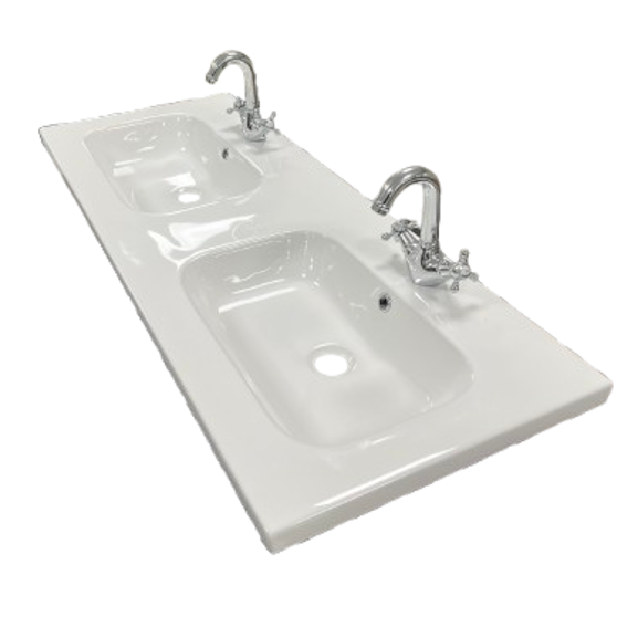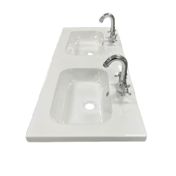 Keramische dubbele wastafel SX9 121x47cm Wit