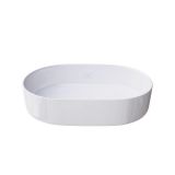 Keramische opzet waskom Trapani 60x38cm wit glans, hoogte 13,5cm. De waskom is vervaardigd uit keramiek. Het is een hard kleigebakken materiaal dat geen water en vuil doorlaat. Daarmee is het ook hygiënisch en zeer gebruiksvriendelijk. Exclusief afvoerplug.