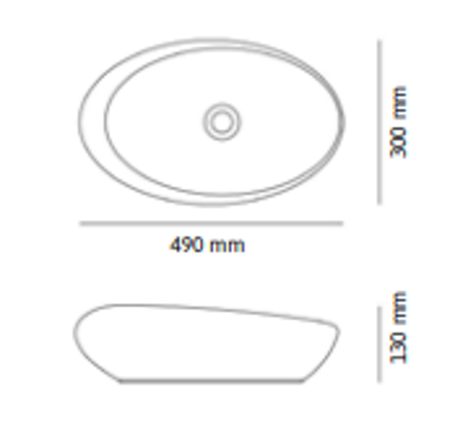 Keramische ovale opbouw waskom Life 49x30cm wit, hoogte 13cm. Voorzien van standaard afvoergat diameter 46mm.