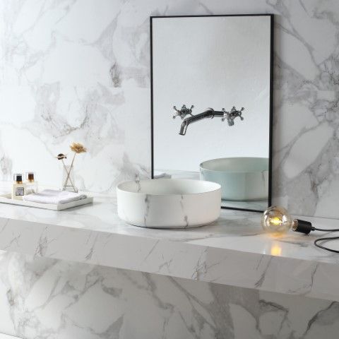 Keramische ronde opbouw waskom Calacatta ø36cm wit marmer