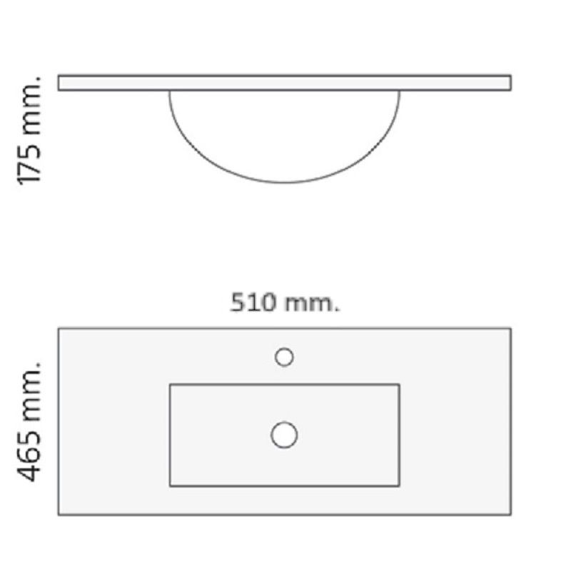 Keramische wastafel Milan 51x46 cm heeft een strak design en is standaard voorzien van een ovalen overloop en een kraangat