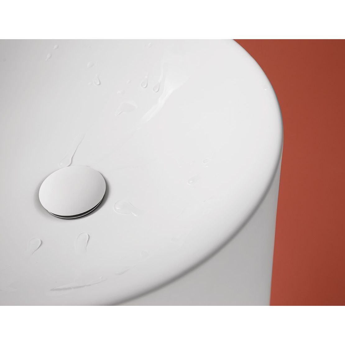 Vrijstaande wastafel Circo van composiet ø40x90cm mat wit, zonder kraangat, exclusief click waste.