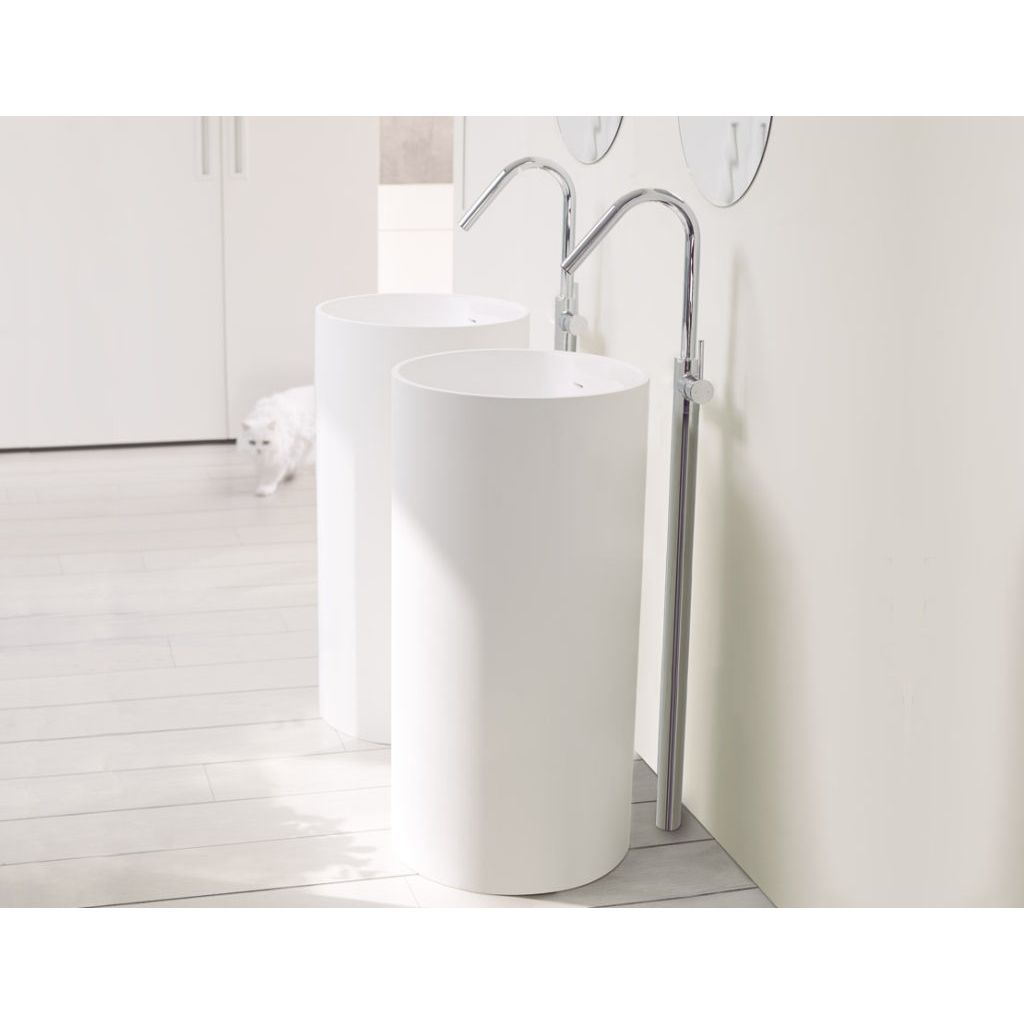 Vrijstaand Solid Surface Wastafel Tube ø45x90cm mat wit - zonder kraangat