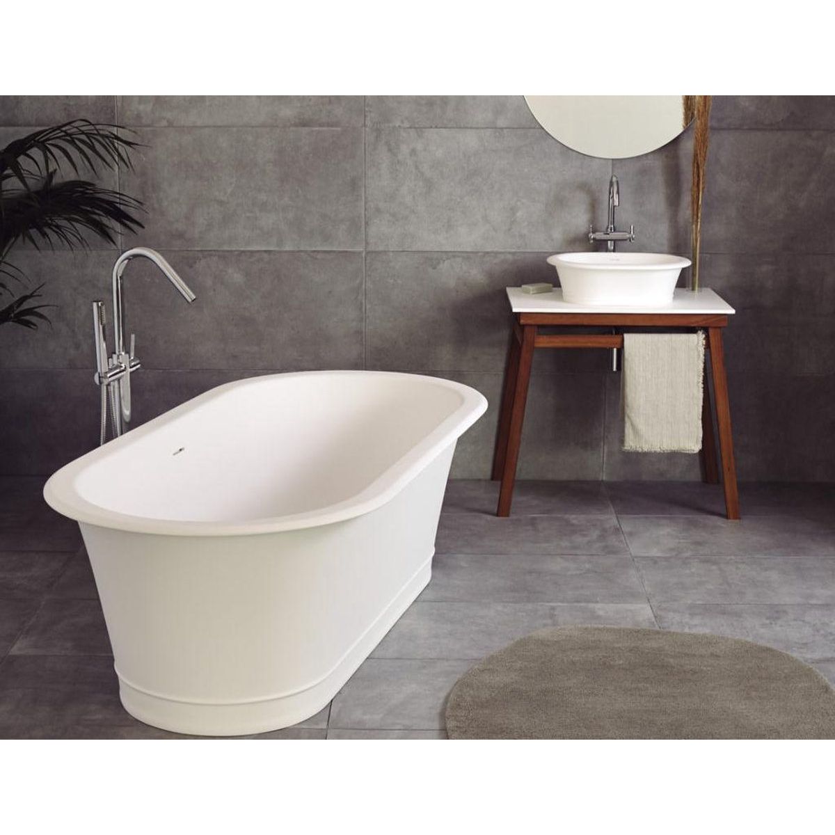 Solid Surface opzet waskom Classico 50x36cm mat wit heeft een hoogte van 15cm en is voorzien van een standaard afvoergat diameter 46mm. Solid Surface is een homogeen massief materiaal, heeft een luxe uitstraling, is eenvoudig te reinigen en 100% niet pore