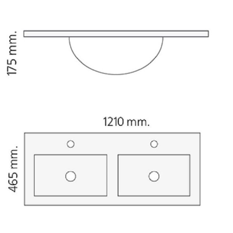 Keramische dubbele wastafel Milan 121x46 cm met 2 waskommen heeft een strak design en is standaard voorzien ovale overlopen en 2 kraangaten