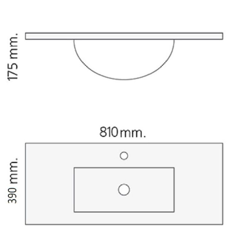 Keramische wastafel Milan 81x39 cm heeft een strak design en is standaard voorzien van een ovalen overloop en een kraangat.