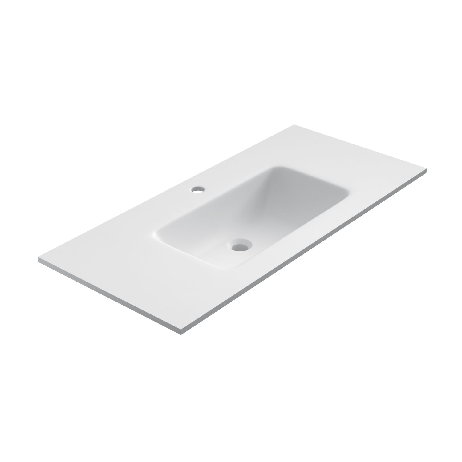 Solid Surface wastafel Florence 101x46cm mat wit, hoogte 14cm, dikte 1cm, inclusief kraangat.
